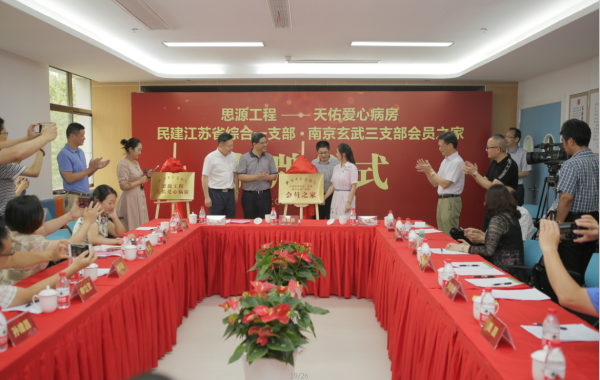 与此同时,“民建江苏省直综合一支部南京玄武三支部会员之家”也在南京天佑儿童医院成立。省政协副主席、民建江苏省委主委洪慧民,民建江苏省委专职副主委常本春,民建南京市委副主委陈定荣,民建江苏省直一支部主委杨珺,民建玄武三支部主委刘绛军,民建南京会员黄春池共同为“民建思源工程天佑爱心病房”、“民建江苏省直一支部南京玄武三支部会员之家”揭牌。